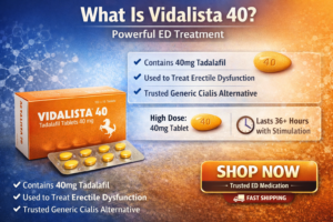 Vidalista 40 is primarily prescribed for the treatment of erectile dysfunction (ED) in adult males. ED affects nearly 1 in 3 men over the age of 40, and Vidalista works by improving blood flow to the penis during sexual stimulation. In some cases, it may also be used off-label to treat benign prostatic hyperplasia (BPH) or pulmonary arterial hypertension, though such uses must be strictly under medical supervision.